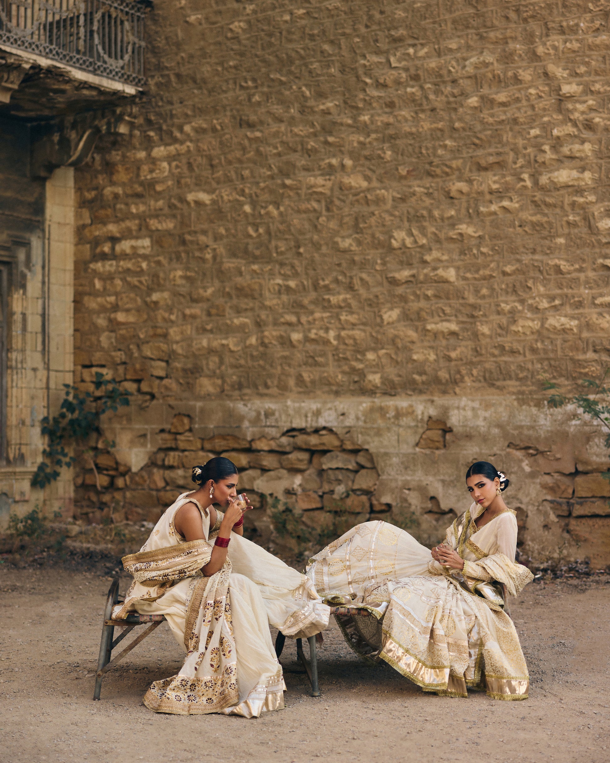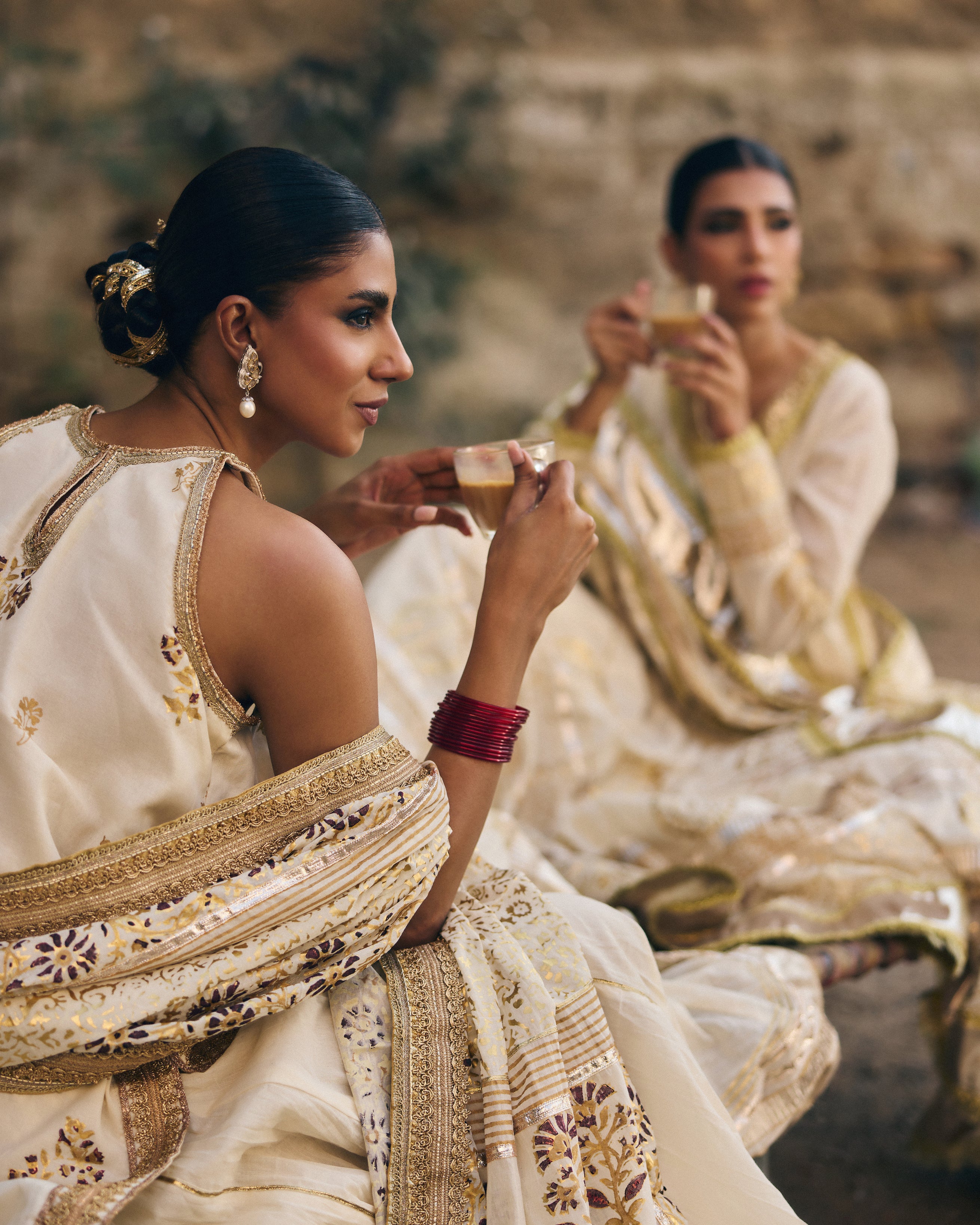 Pari is an elegant three-piece ensemble crafted from pure hand-woven muslin, blending traditional charm with a refined, graceful silhouette. The short shirt adds a modern, youthful touch, while the classic Dhaka pajama provides beautiful volume and movement, creating a look that is both festive and timeless. The centerpiece of this outfit is its heavy dupatta, richly finished to bring depth,, and a celebratory feel to the entire look. Soft foil printing and gold detailing enhance the richness of the muslin, giving Pari a regal glow without overpowering its delicate elegance. Perfect for nikah events, mehndi celebrations, weddings, and all occasions where you want to look beautifully traditional and effortlessly radiant.